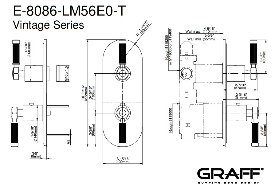 Graff Vintage Bateria natryskowa podtynkowa 2-uchwytowa - element zewnętrzny Chrom E-8086-LM56E0-T