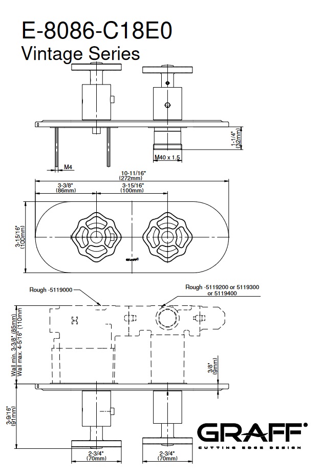 Graff Vintage Bateria natryskowa podtynkowa 2-uchwytowa - element zewnętrzny Chrom E-8086H-C18E0-T