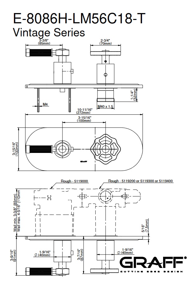 Graff Vintage Bateria natryskowa podtynkowa 2-uchwytowa - element zewnętrzny Chrom E-8086H-LM56C18-T