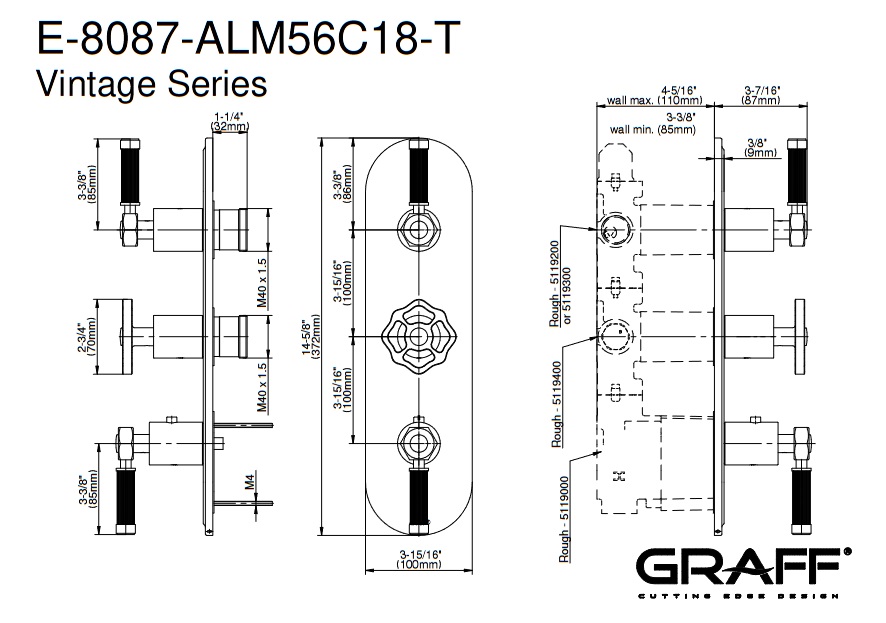 Graff Vintage Bateria natryskowa podtynkowa 3-uchwytowa - element zewnętrzny Chrom E-8087H-ALM56C18-T
