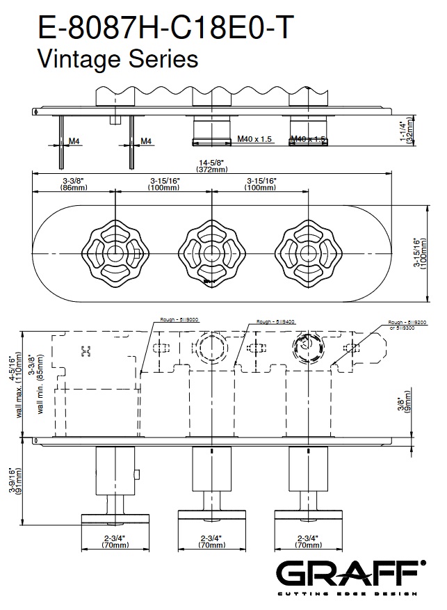 Graff Vintage Bateria natryskowa podtynkowa 3-uchwytowa - element zewnętrzny Chrom E-8087H-C18E0-T