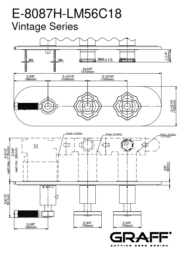 Graff Vintage Bateria natryskowa podtynkowa 3-uchwytowa - element zewnętrzny Chrom E-8087H-LM56C18-T