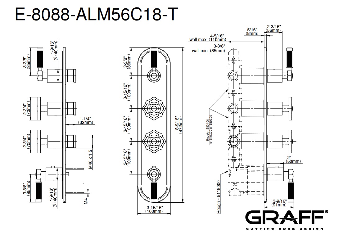 Graff Vintage Bateria natryskowa podtynkowa 4-uchwytowa - element zewnętrzny Chrom E-8088-ALM56C18-T