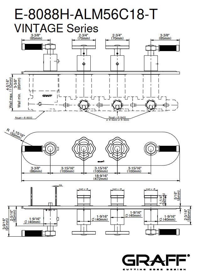 Graff Vintage Bateria natryskowa podtynkowa 4-uchwytowa - element zewnętrzny Chrom E-8088H-ALM56C18-T