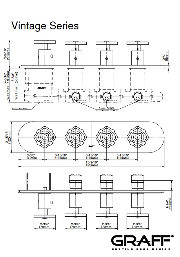 Graff Vintage Bateria natryskowa podtynkowa 4-uchwytowa - element zewnętrzny Chrom E-8088H-C18E0-T