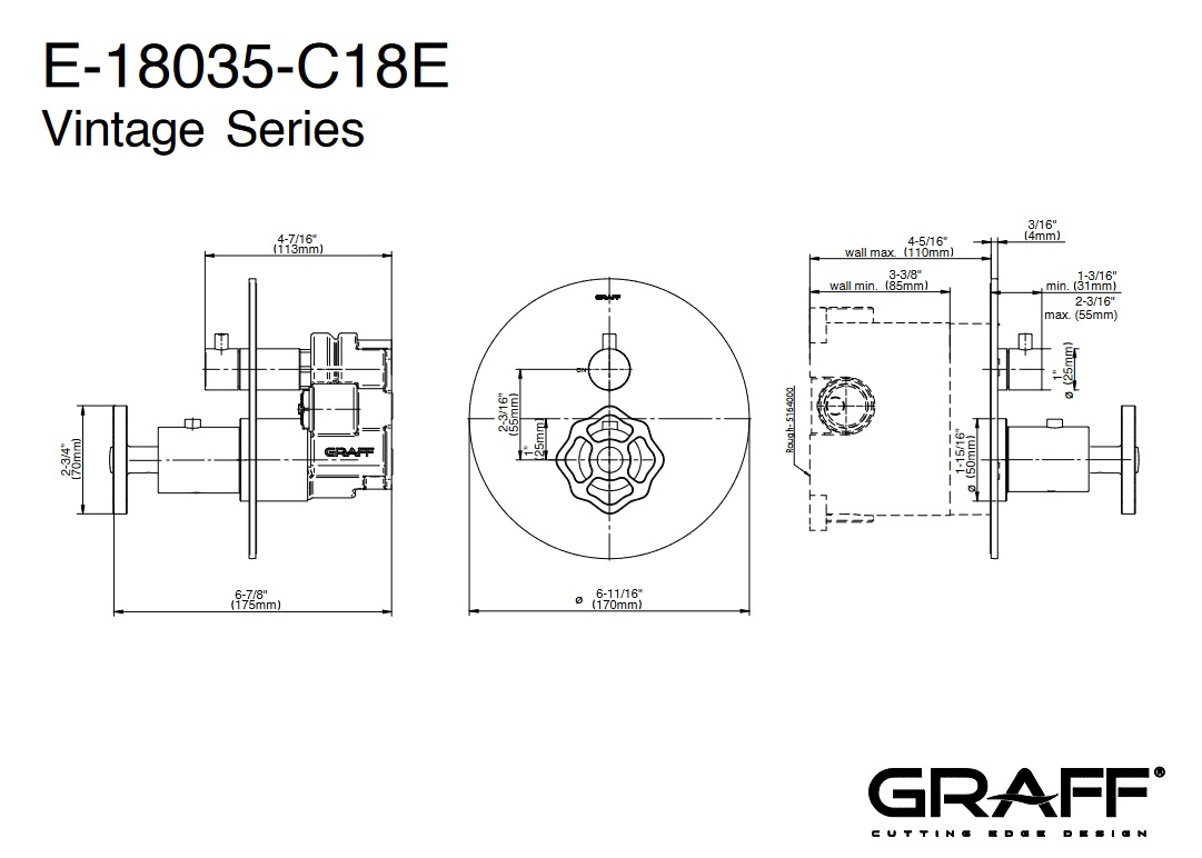 Graff Vintage Zawór termostatyczny, odcinający podtynkowy - element zewnętrzny Chrom E-18035-C18E-T