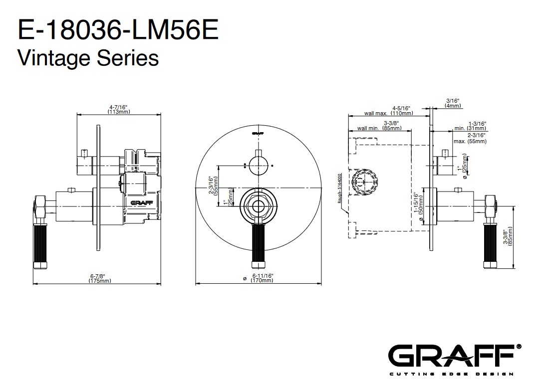 Graff Vintage Zawór termostatyczny 2-drożny podtynkowy - element zewnętrzny Chrom E-18036-LM56E-T