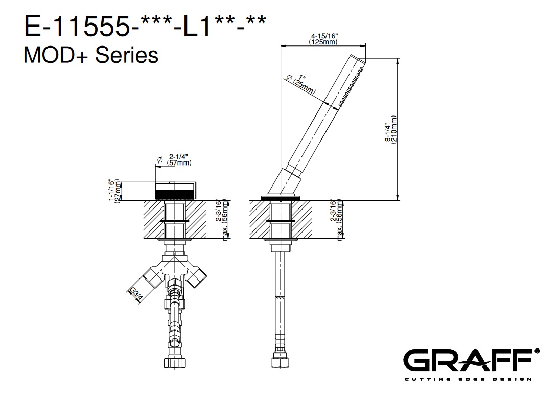 Graff MOD+ Zestaw prysznicowy nablatowy 2-otworowy Chrom E-11555-R1-L1