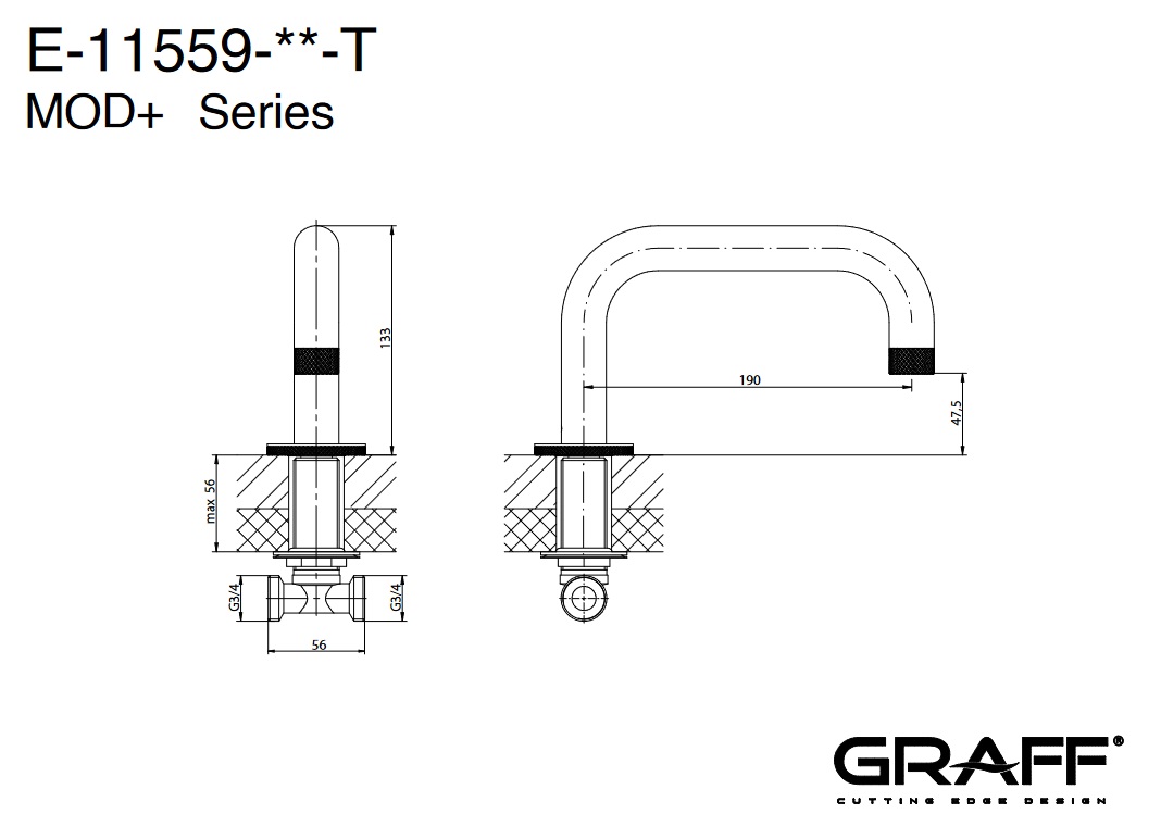 Graff MOD+ Wylewka wannowa nablatowa Chrom E-11559-T