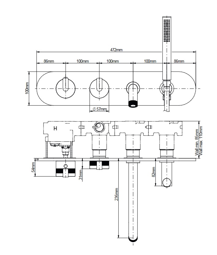 Graff MOD+ Bateria natryskowo-wannowa termostatyczna podtynkowa z zestawem prysznicowym - element zewnętrzny Chrom EV7.690H-R2-L1-T