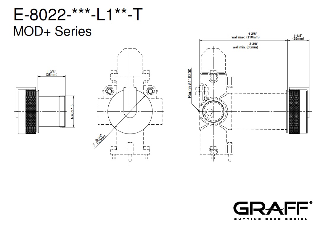 Graff MOD+ Bateria 2-drożna podtynkowa - element zewnętrzny Chrom E-8022-R1-L1-T