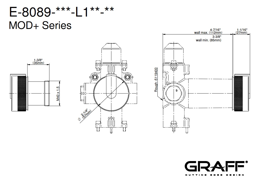 Graff MOD+ Zawór odcinający podtynkowy - element zewnętrzny Chrom E-8089-R1-L1-T
