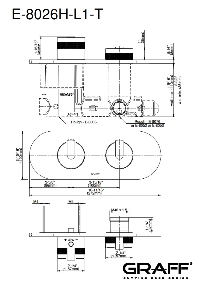 Graff MOD+ Bateria natryskowa termostatyczna podtynkowa - element zewnętrzny Chrom E-8026H-R2-L1-T