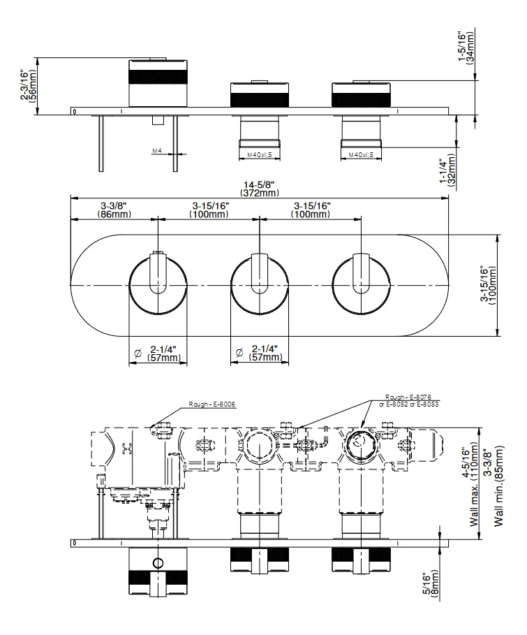 Graff MOD+ Bateria natryskowa termostatyczna 3-uchwytowa podtynkowa - element zewnętrzny Chrom E-8033H-R1-L1-T