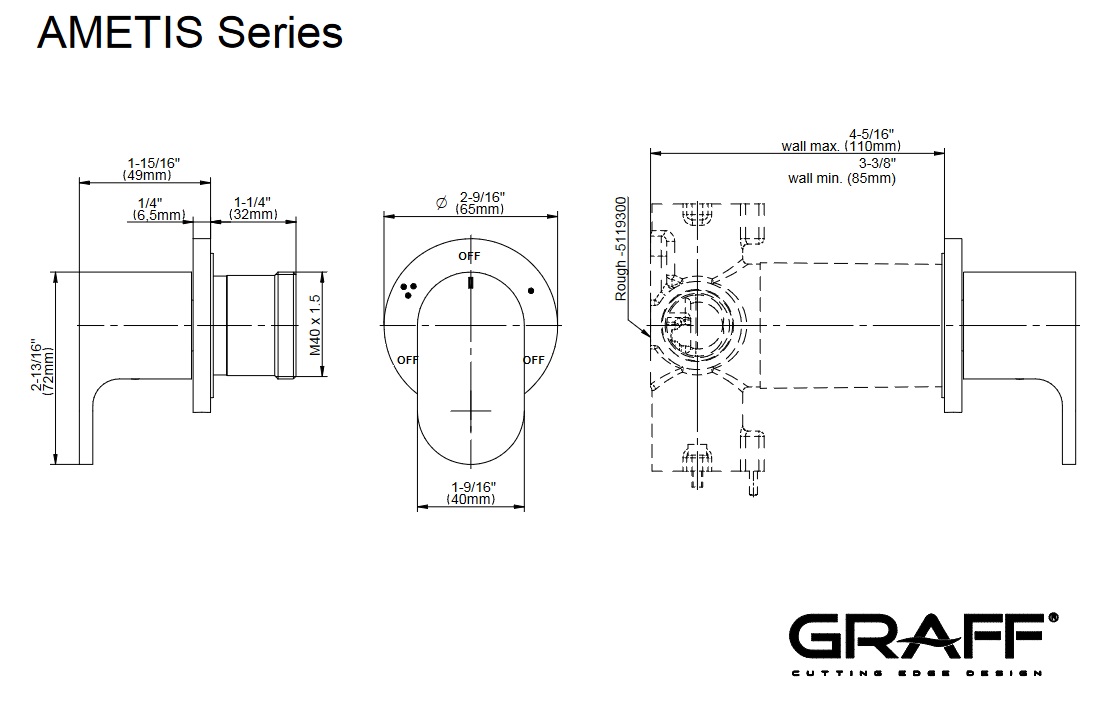 Graff Ametis Przełącznik podtynkowy 3-drożny - element zewnętrzny Chrom E-8069-LM44E1-T