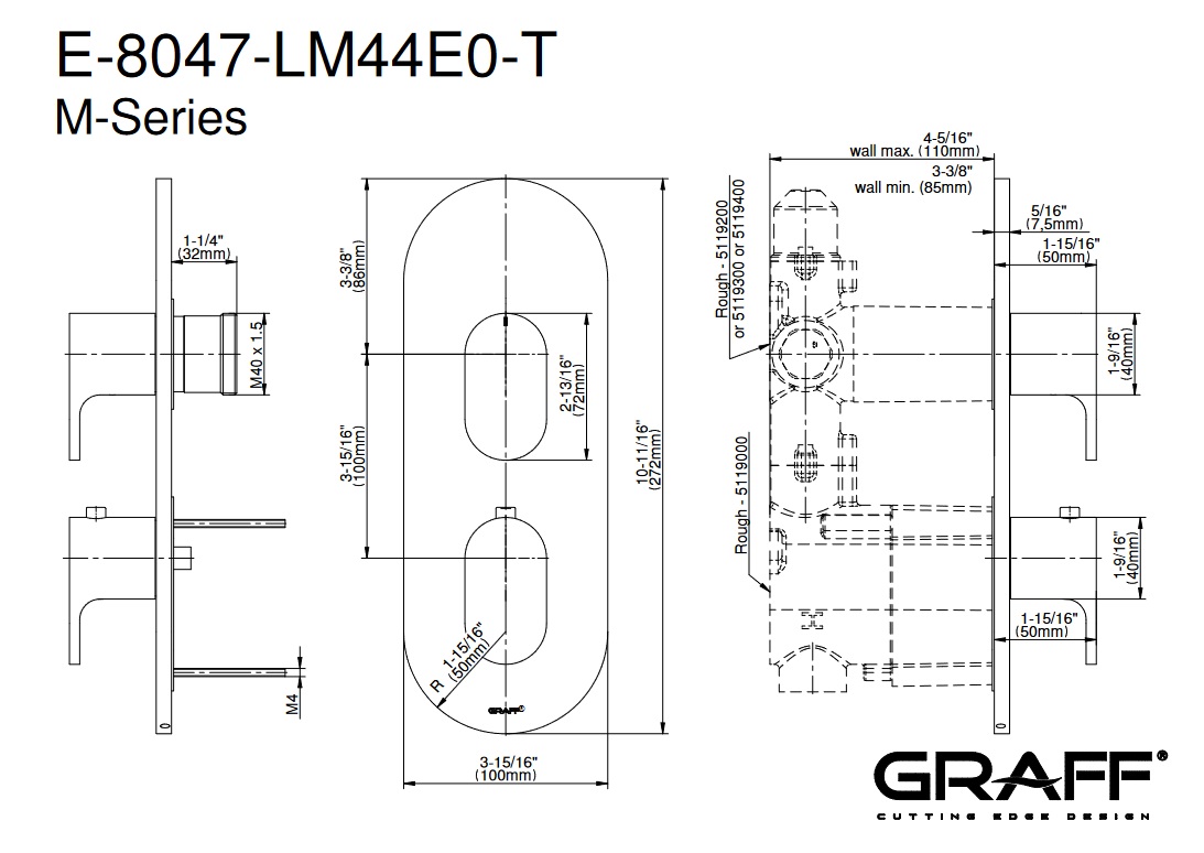 Graff Ametis Bateria natryskowa podtynkowy 2-uchwytowa - element zewnętrzny Chrom E-8047-LM44E0-T