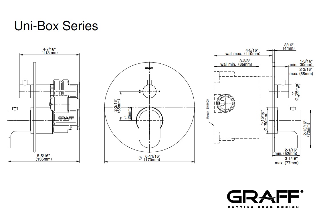 Graff Ametis Bateria natryskowa termostatyczna z przełącznikiem 2-drożnym - element zewnętrzny Chrom E-18036-LM44E-T