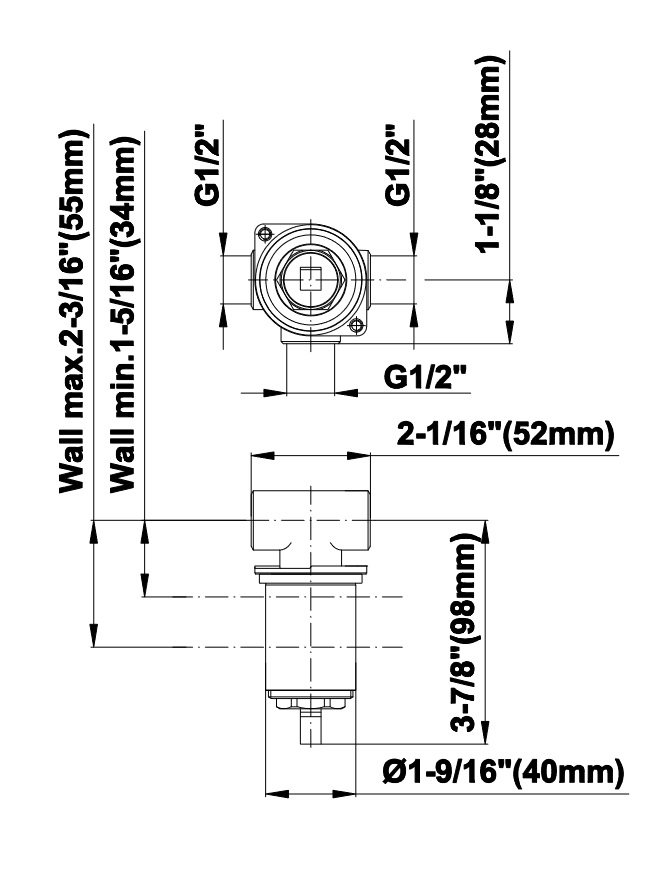 Głębokość montażu: 34 - 55 mm