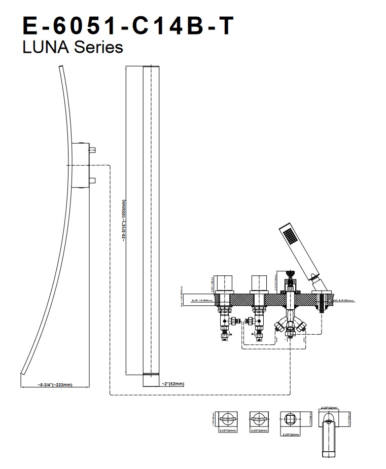 Graff Luna Bateria wannowa nablatowa z zestawem natryskowym - elementy zewnętrzne Chrom E-6051-C14B-T