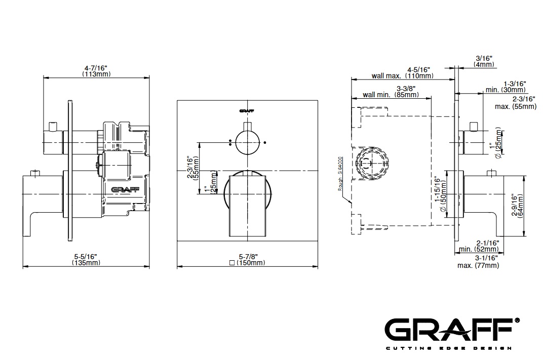 Graff Luna Bateria termostatyczna podtynkowa - element zewnętrzny Chrom E-8043-LM36E-T