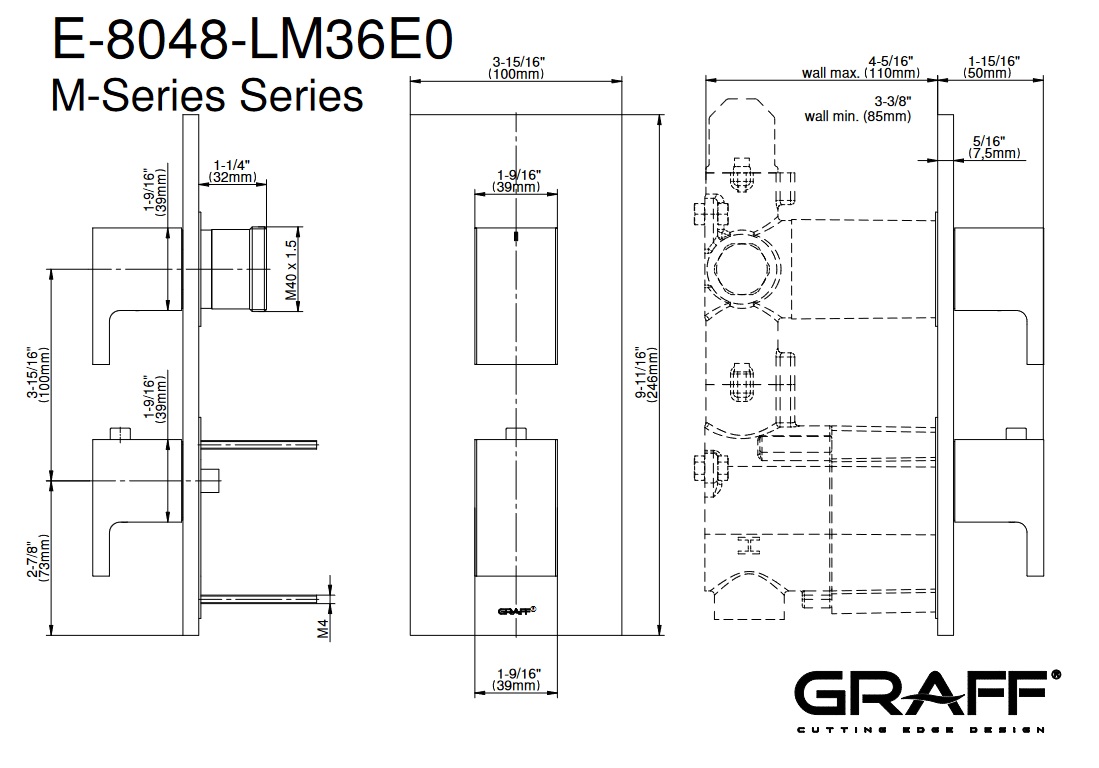 Graff Luna Bateria natryskowa podtynkowy 2-uchwytowa - element zewnętrzny Chrom E-8048-LM36E0-T