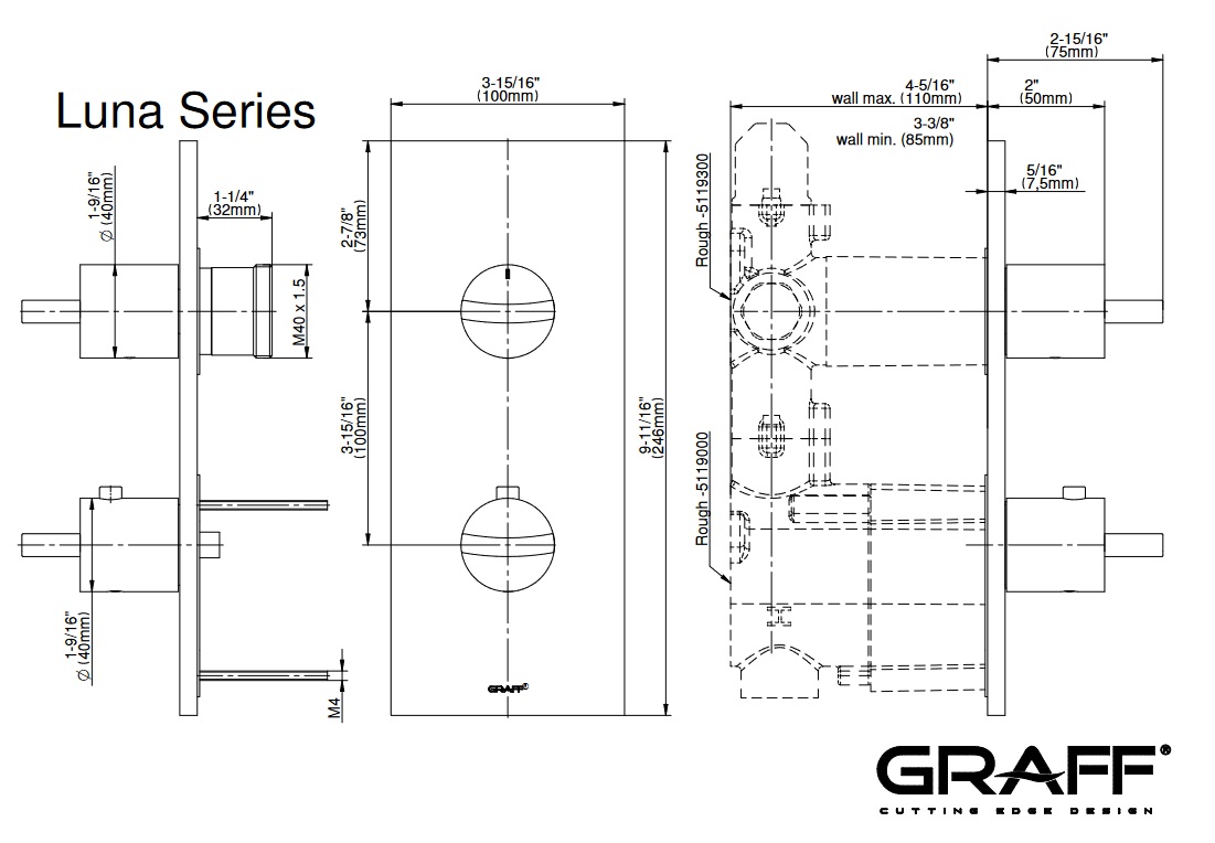 Graff Luna Bateria natryskowa podtynkowy 2-uchwytowa - element zewnętrzny Chrom E-8048-C14E0-T