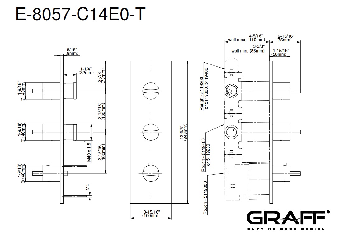 Graff Luna Bateria natryskowa podtynkowy 3-uchwytowa - element zewnętrzny Chrom E-8057-C14E0-T