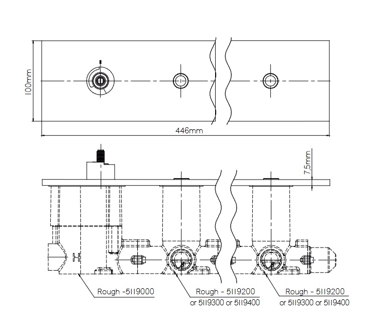 Graff Luna Bateria natryskowa podtynkowy 4-uchwytowa - element zewnętrzny Chrom E-8059H-LM36E0-T