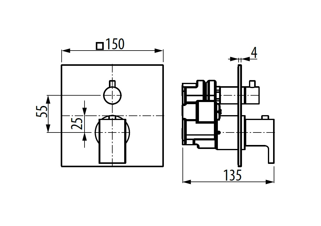 Graff Luna Zawór termostatyczny 3-drożny podtynkowy - element zewnętrzny Chrom E-18043-C14E-T