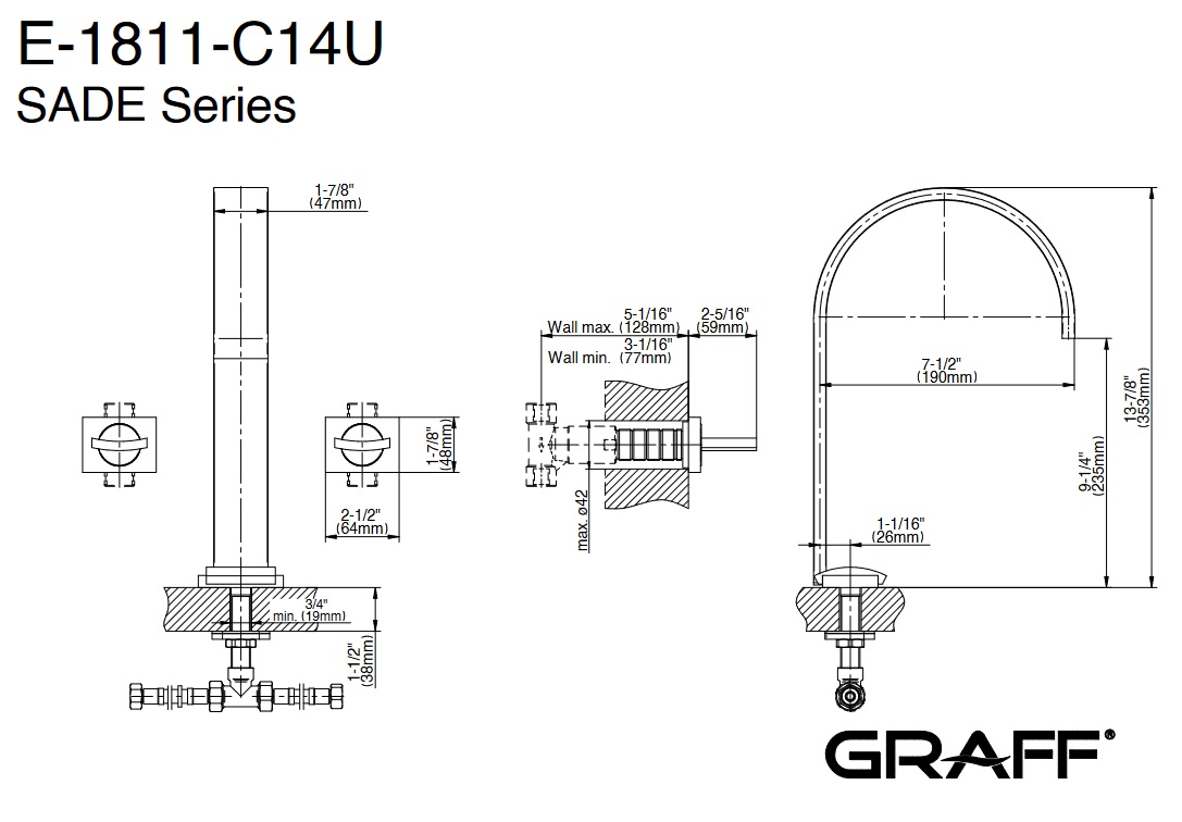 Graff Sade Bateria umywalkowa z zaworami w ścianie Chrom E-1811-C14U-T