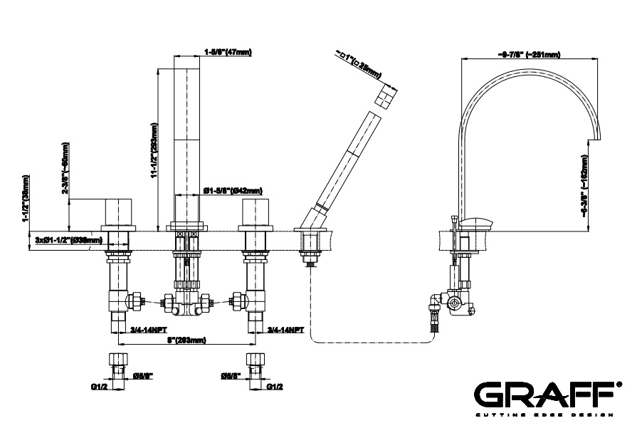 Graff Sade Bateria wannowa 4-otorowa z zestawem natryskowym Chrom E-1851-C14B