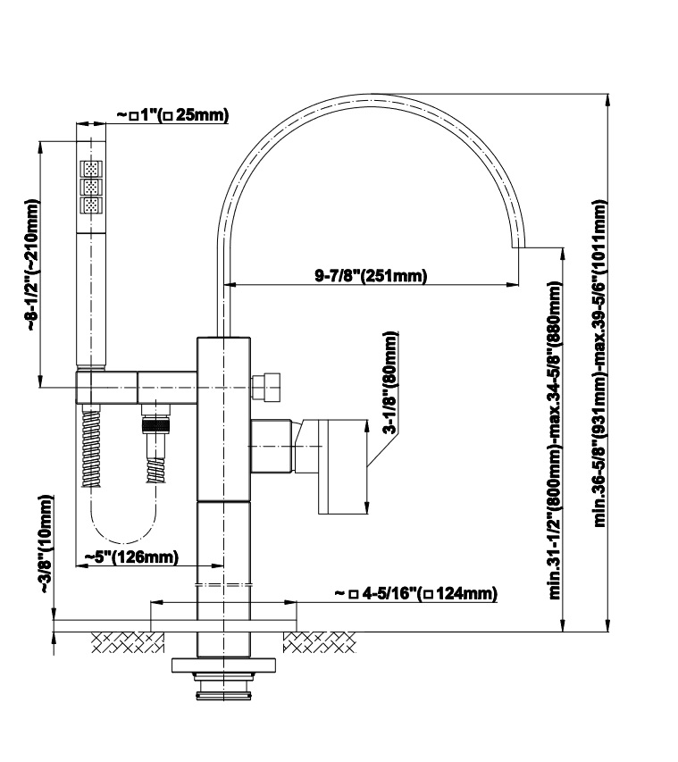 Wysokość wylewki: 800 - 880 mm