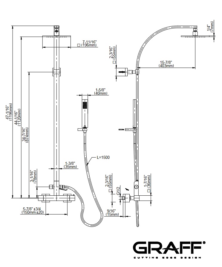 Graff Sade Zestaw natryskowy z termostatem oraz deszczownicą i zestawem prysznicowym Chrom EX-8950