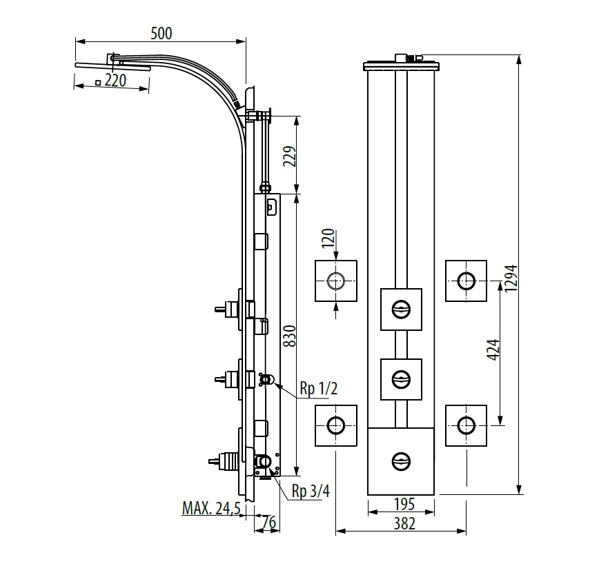 Graff Sade Zestaw natryskowy termostatyczny z deszczownicą i dyszami prysznicowymi - element zewnętrzny Chrom EE3.100A-C14S-T