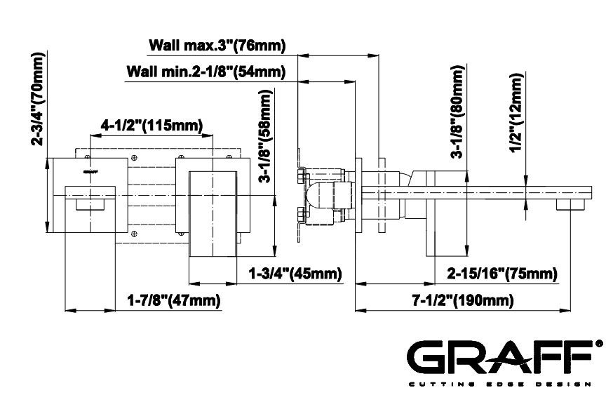 Graff Targa Bateria umywalkowa podtynkowa 190 mm - element zewnętrzny Chrom E-3635-LM36W-T