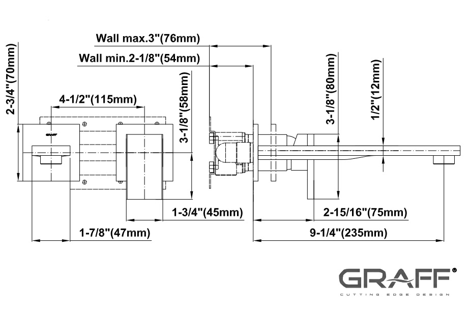 Wysięg uchwytów: 75 mm