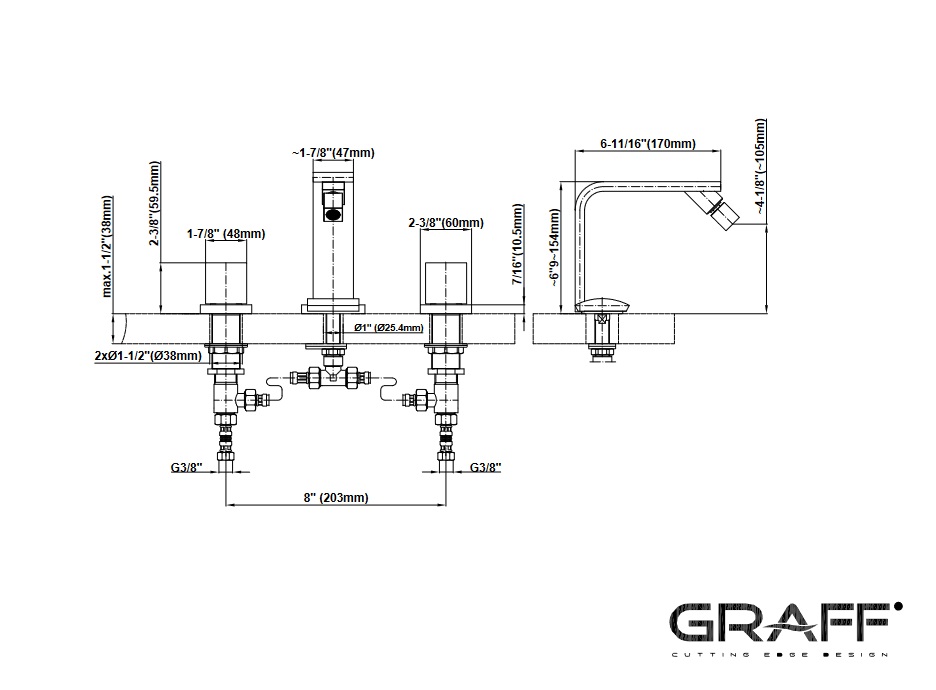 Graff Targa Bateria bidetowa 3-otworowa Chrom E-3662-C14