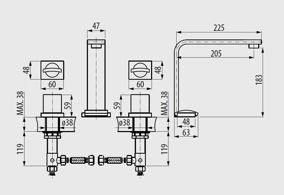 Graff Targa Bateria wannowa 3-otworowa Chrom E-3650-C14B