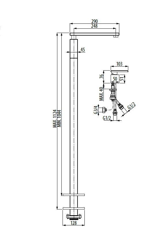 Szerokość podstawy: 128/128 mm