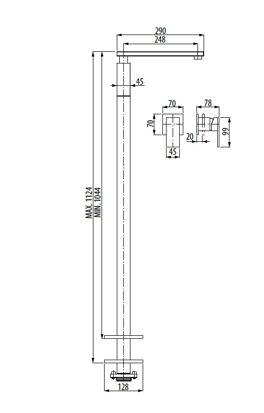 Graff Solar Bateria umywalkowa wolnostojąca z uchwytem podtynkowym Chrom E-3715-LM31W-T
