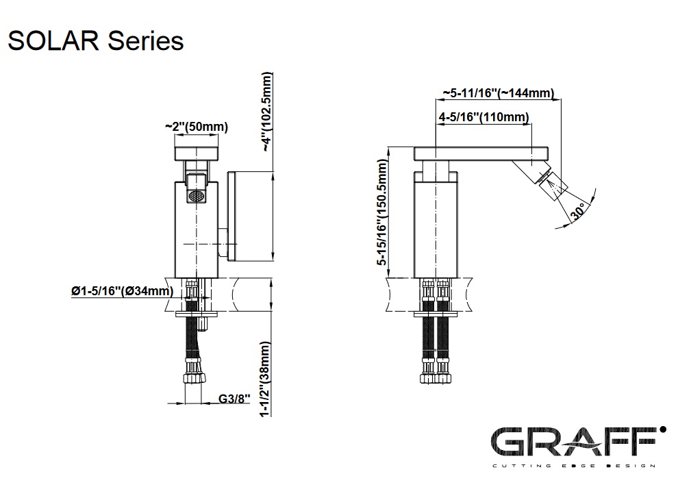 Graff Solar Bateria bidetowa jednootworowa Chrom E-3760-LM31