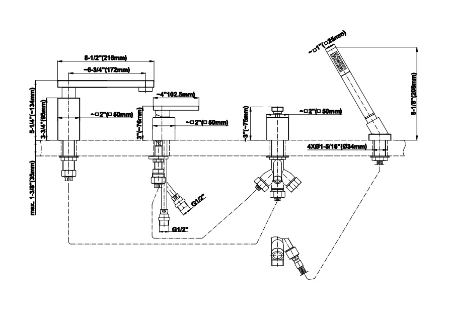 Graff Solar Bateria wannowa 4-otworowa z zestawem prysznicowym Chrom E-3751-LM31