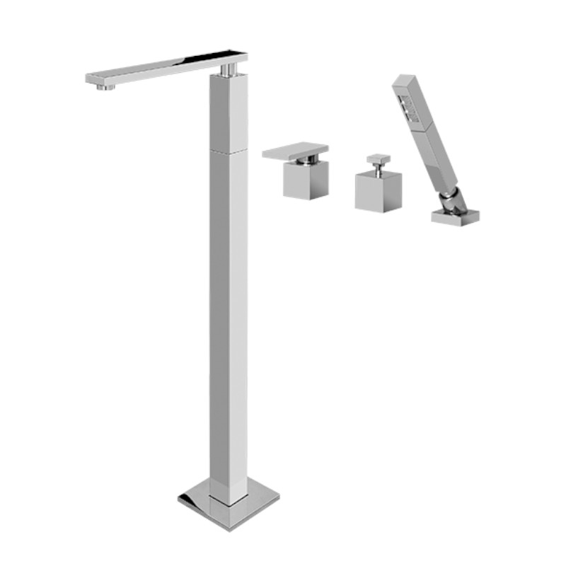 Graff Solar Bateria wannowa z wlewką wolnostojącą z uchwytami i zestawem prysznicowym nablatowym Chrom E-3753-LM31-T