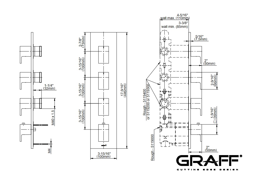 Graff Solar Bateria natryskowa podtynkowy 4-uchwytowa - element zewnętrzny Chrom E-8059-LM31E0-T