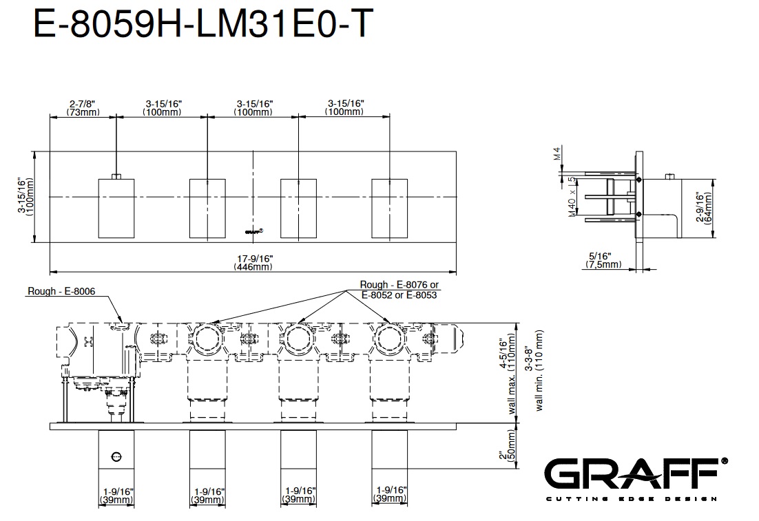 Graff Solar Bateria natryskowa podtynkowy 4-uchwytowa - element zewnętrzny Chrom E-8059H-LM31E0-T