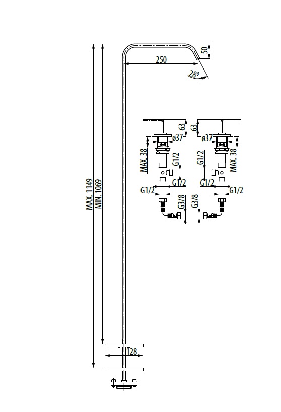 Graff Immersion Wylewka wolnostojąca z zaworkami nablatowymi - element zewnętrzny Chrom E-2315-LM40-T