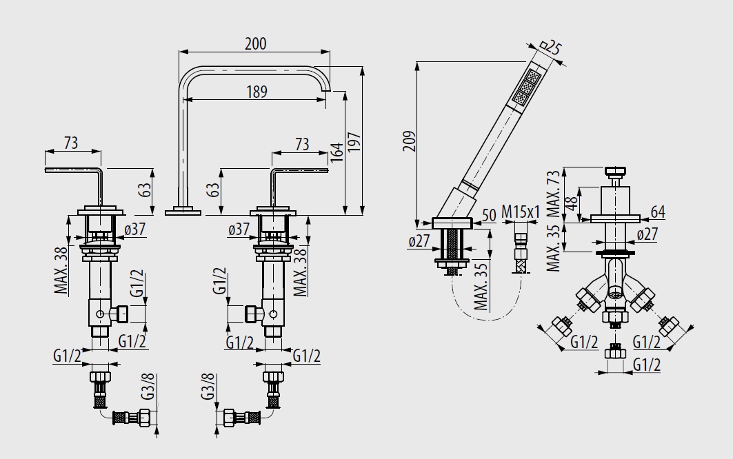 Graff Immersion Bateria wannowa 5-otworowa z zestawem prysznicowym Chrom E-2358-LM40