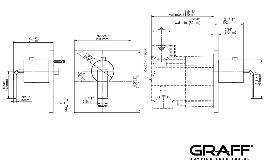 Graff Immersion Bateria natryskowa podtynkowa termostatyczna - element zewnętrzny Chrom E-8043-LM40E-T