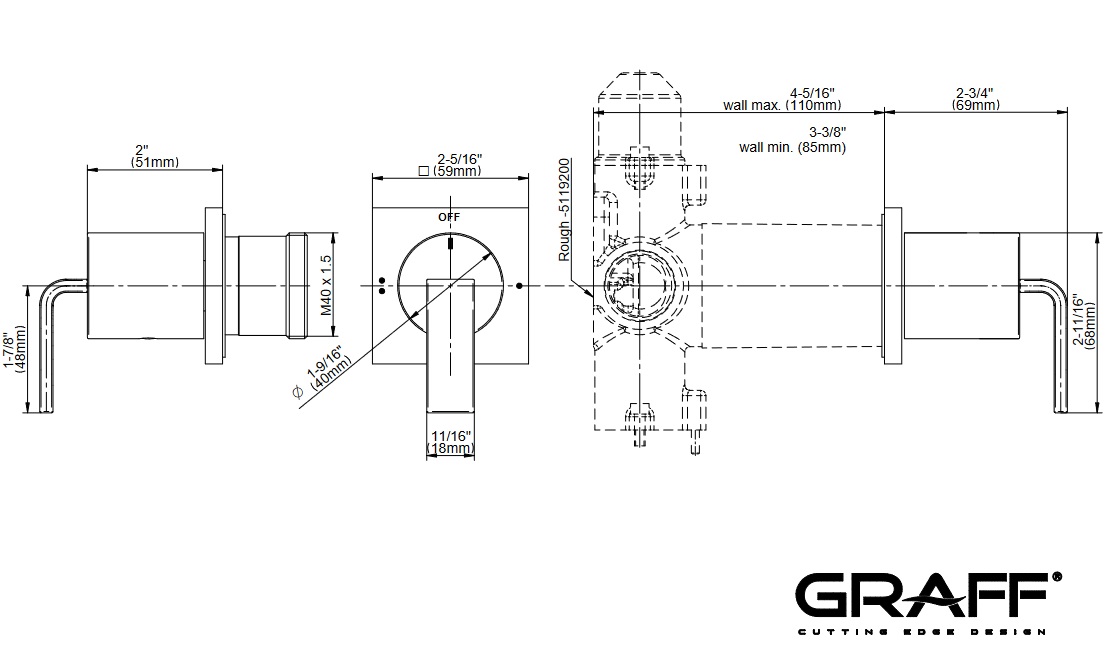 Graff Immersion Zawór podtynkowy 2-drożny - element zewnętrzny Chrom E-8071-LM40E1-T