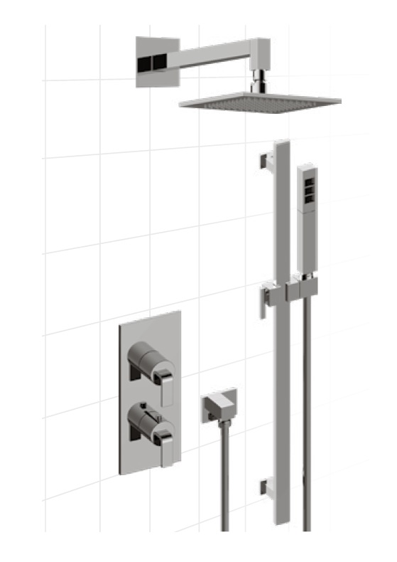 Graff Immersion Zestaw natryskowy podtynkowy termostatyczny z deszczownicą ścienną 250x250 mm z zestawem natryskowym na drążku Chrom IME04